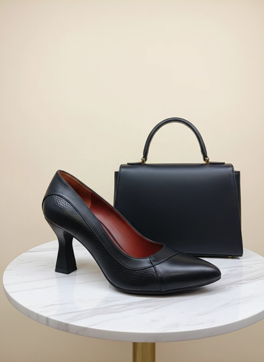 کفش تمام چرم پاشنه 6 سانت مدل 7007